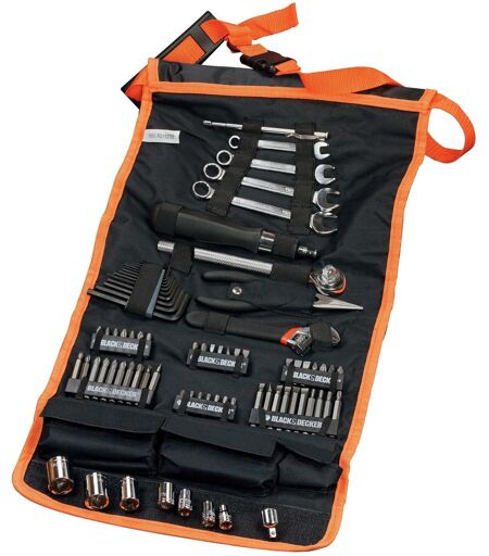 BLACK+DECKER Mechaniker-Set mit Rolltasche, 76-teilig, Werkzeug-Set