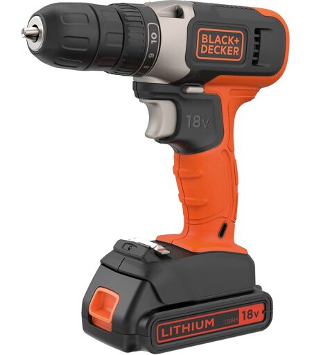 Mit dem leichten, kompakten 18Volt Akku-Bohrschrauber BCD001C1 von BLACK+DECKER mit max. 37 Nm Drehmoment und einer Drehzahl von bis zu 600 U/min werden Schraubarbeiten schnell und mühelos erledigt. Er eignet sich für Schraubanwendungen, Bohren in Holz bis 25mm und Bohren in Metall bis 10mm Durchmesser. Die 10 Drehmoment-Stufen plus zusätzlicher Bohrstufe sorgen dafür, dass die Schrauben in unterschiedlichen Materialien plan eingedreht werden können, für präzise Schraubergebnisse von Anfang an. Die Drehzahl lässt sich über den stufenlosen Geschwindigkeitsregler leicht an die gewünschte Anwendung anpassen, und das Schiebe-Akku-System überzeugt mit leichtem und schnellem Akkuwechsel. Das LED-Arbeitslicht sorgt dabei für gute Sichtverhältnisse auch in dunklen Arbeitsbereichen. Der Lithium-Ionen-Akku des Akku-Bohrschraubers BCD001C1 hält die Ladung bis zu 18 Monate lang, wenn er nicht verwendet wird. So ist er jederzeit für das nächste Projekt bereit, wenn er benötigt wird. ...