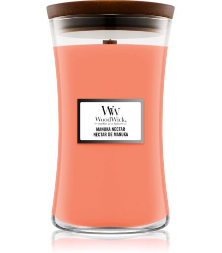 Woodwick Manuka Nectar, 610 g, Duftkerzen Raumdüfte, Die Duftkerze Woodwick Manuka Nectar schafft einen wunderbaren Duft und sorgt so für eine gemütliche Atmosphäre, mit der Sie sich stets wohlfühlen werden. Eigenschaften: Obstduft süßes Aroma knistert beim Brennen angenehm und schafft eine wohnliche Atmosphäre Zusammensetzung: Holzdocht Anwendung: Stellen Sie das Teelicht auf einen feuerfesten Untergrund. Nicht länger als 4 Stunden brennen lassen. Das Teelicht nie bis zum Ende brennen lassen. Das brennende Teelicht nie ohne Aufsicht oder in der Nähe brennbarer Gegenstände lassen. Außerhalb der Reichweite von Kindern und Haustieren aufbewahren. Lassen Sie die Kerze immer mindestens so lange brennen, bis die gesamte obere Schicht schmilzt. So wird die unerwünschte Muldenbildung im Wachs vermieden. Für ein optimales Brennverhalten empfehlen wir, den Docht regelmäßig auf die empfohlene Länge zurückzuschneiden. ...