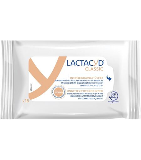 Anwendungsgebiet von Lactacyd Classic IntimreinigungstücherLactacyd® Classic Intimreinigungstücher sind so formuliert, dass sie im Einklang mit dem Körper arbeiten und das natürliche Gleichgewicht des Intimbereichs bewahren. Angereichert mit natürlicher L-Milchsäure sorgen sie für ein gepflegtes und frisches Gefühl und helfen, sich den ganzen Tag über wohlzufühlen. Eignet sich in jeder Lebensphase für die tägliche Anwendung, auch während der Menstruation. Klinisch geprüft und bestätigt. Dermatologisch & gynäkologisch getestet, pH-ausgleichend. Mild parfümiert, seifenfrei, ohne Alkohol.Millionen Frauen weltweit vertrauen auf die Marke Lactacyd. Als Nr. 1* Intimpflegemarke in Europa blicken wir stolz auf über 70 Jahre Erfahrung im Bereich der Intimhygiene.*Euromonitor Juni 2023Wirkstoffe / Inhaltsstoffe / ZutatenInhaltsstoffe von Lactacyd Classic Intimreinigungstücher:Aqua, Inulin, Alpha-glucan Oligosaccharide, Triethyl Citrate, Allantoin, Lactic Acid, Citric Acid, Sodium Benzoate, PEG-40 Hydrogenated Castor Oil, Trideceth-9, Parfum, Phenoxyethanol, Ethylhexylglycerin, Sodium Hydroxide.GegenanzeigenBei bekannter Überempfindlichkeit gegenüber einem der oben genannten Inhaltsstoffe sollte dieses Produkt nicht angewendet werden.DosierungAnwendungsempfehlung von Lactacyd Classic Intimreinigungstücher:Lactacyd® Classic Intimreinigungstücher eignen sich ideal für die Anwendung zu Hause bei der täglichen Intimpflege, sind jedoch auch praktisch für unterwegs. • Nur zur äußeren Anwendung• Bei Reizung oder Unverträglichkeit Produkt absetzenInformationKlinisch geprüfte und pH-angepasste Intimreinigungstücher mit natürlicher L-Milchsäure und Allantoin für die tägliche Pflege und unterwegsHinweiseAußerhalb der Reichweite von kleinen Kindern aufbewahren.