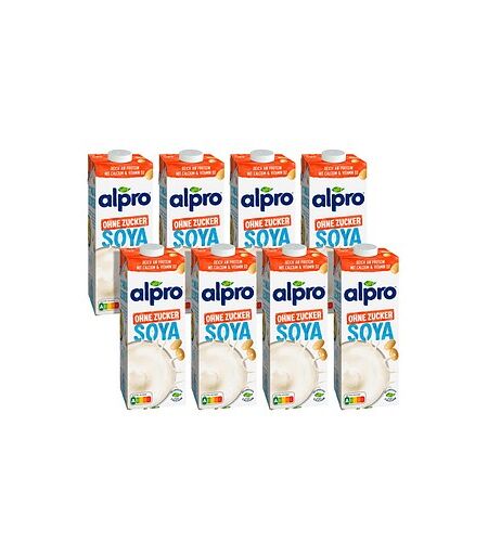 Die leckere Milchalternative ohne Zucker!Den alpro® Sojadrink als Milch-Alternative zu verwenden ist eine sehr gute Entscheidung! Erst recht, da die Sojabohnen aus kontrolliert nachhaltigem Anbau stammen und dieser Drink ganz ohne Zucker auskommt! Verwenden Sie den leckeren, zuckerarmen alpro® Sojadrink einfach pur im Müsli oder zum Kochen und Backen in allen Rezepten, die Ihnen schmecken!100% pflanzlichDer alpro® Sojadrink ist von Natur aus arm an gesättigten Fettsäuren, eine hochwertige Protein- und Calciumquelle und enthält die Vitamine B2, B12 und D. Die Produkte von alpro® werden regelmäßig von unabhängigen Instituten geprüft. Die hochwertige Qualität sowie der natürliche Geschmack werden durch die schonende und sorgfältige Verarbeitung gewährleistet.Hervorragend verträglichDa der Sojadrink von alpro® vegetarisch, vegan, zuckerfrei und laktosefrei ist, eignet er sich auch für Menschen mit Laktoseintoleranz oder einfach für alle, die eine leckere Alternative zu herkömmlicher Milch suchen.Den alpro® Sojadrink genießen Sie rein pflanzlich und ohne Zucker! Bestellen Sie den alpro® Sojadrink jetzt bei uns im Vorteils-Pack mit 8x 1,0 l online und lassen Sie ihn sich bequem liefern. ...