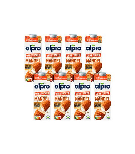 Lecker und Natur pur: der alpro® Mandeldrink OHNE ZUCKERDurch die natürliche leichte Süße von Mandeln sind diese hervorragend zum Herstellen eines reinen Mandelgetränks geeignet. Deshalb kommt der alpro® Mandeldrink sehr gut OHNE Farb- und Konservierungsstoffe, OHNE Zucker und OHNE Süßstoffe aus. Sie sehen, um eine leckere Milchalternative zu finden, brauchen Sie keine komplizierten Rezepte!Hervorragend verträglichDa der Mandeldrink OHNE ZUCKER von alpro® vegetarisch, vegan, laktosefrei, glutenfrei, Einwegverpackung ist, eignet er sich auch für Menschen mit Laktoseintoleranz, mit Gluten-Unverträglichkeit oder einfach für alle, die eine leckere Alternative zu herkömmlicher Milch suchen.Den alpro® Mandeldrink genießen Sie rein pflanzlich und völlig ungesüßt! Bestellen Sie den alpro® Mandeldrink OHNE ZUCKER jetzt bei uns im Aktionspack mit 8x 1,0 l online und lassen Sie ihn sich bequem liefern. Sie können ihn bestens als Alternative zu Kuhmilch für Ihr Müsli, Ihren Kaffee oder zum Backen nutzen. ...