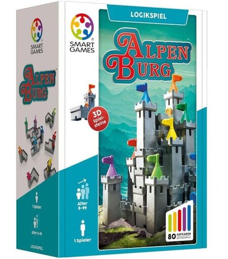 Alpenburg - Wieviele Türme hat die Burg? Die Fürstinh möchte eine neue Burg bauen und hat genaue Vorstellungen..., aber wie viele Türme möchte sie denn nun? Und welche Farben sollen die Fahnen auf den einzelnen Türmen haben? Kannst Du die Burg richtig nach ihren Vorgaben bauen? Ein Spiel für kleine und große Architekten. Ab 8 Jahren. ...