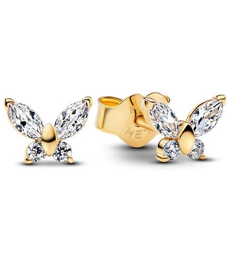 Pandora Schmetterling Ohrstecker – Eleganz mit 14 Karat Vergoldung Feiere die Schönheit der Verwandlung mit diesen zarten Pandora Ohrsteckern. Das 14 Karat vergoldete Schmuckstück ist mit funkelnden, klaren Cubic Zirkonia besetzt und verleiht deinem Look einen unverwechselbaren Glanz. Material: 14 Karat Vergoldung auf spezieller Metalllegierung Steine: Klare Cubic Zirkonia mit facettenreichem Funkeln Handgefertigt: Liebevoll von erfahrenen Kunsthandwerkern gefertigt Abmessungen: 2,5 mm tief, 5,2 mm hoch, 7 mm breit Pflegehinweis: Sanftes Entfernen des natürlichen Anlaufens empfohlen Diese Ohrstecker sind mehr als nur ein Accessoire – sie sind dein Zeichen für unvergessliches Styling und einen Hauch Alltagsglamour. Die warme goldene Farbe harmoniert perfekt mit dem brillanten Funkeln der Cubic Zirkonia und macht jedes Outfit zu etwas Besonderem. Dank der sorgfältigen Handarbeit genießt du höchste Qualität und langlebige Schönheit. Gönn dir diesen zeitlosen Begleiter und setze stilvolle Akzente bei jedem Anlass. ...