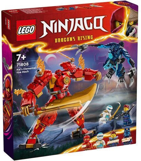 Mit "Kais Feuermech" (71808) können Kinder ab 7 Jahren die Abenteuer aus der 2. Staffel der TV-Serie NINJAGO® Aufstieg der Drachen nachspielen. Mit diesem Action-Spielzeug für 7-jährige Jungs und Mädchen zum Umgestalten können Kinder ihren eigenen Mech erschaffen! LEGO® NINJAGO® "Kais Feuermech" (71808) 322 Teile Feuermech (Arme, Beine und Oberkörper abnehmbar und anders kombinierbar), 4 NINJAGO® Minifiguren (Kai, Zane, Jordana, Wolfsjäger) inkl. Bildanleitung und LEGO® Builder App ab 7 Jahren geeignet Kinder können die beweglichen Arme und Beine verdrehen, um den LEGO® NINJAGO® Mech in dramatische Actionposen zu bringen. Außerdem hat die rote Mech-Figur ein Cockpit für die Minifigur Kai sowie ein großes goldenes Schwert für Duelle und Rollenspiele mit dem Mech des Wolfsclans. Seine Beine und Arme und auch seinen Oberkörper kann man abnehmen und mit den Teilen von 2 anderen Actionfiguren kombinieren: Coles Erdmech (71806) und Soras Technikmech (71807) sind separat erhältlich. Kinder können die Teile kombinieren und zu einem einzigartigen Actionfiguren-Spielzeug zusammenfügen. Das Set enthält außerdem 4 LEGO® NINJAGO® Figuren: Kai und Zane (jeweils mit einem Katana), Jordana mit einem Schwert und ein Wolfsjäger lassen Kinder packende Ninja-Duelle darstellen. Man kann die Figuren aus diesem Set auch mithilfe der LEGO® Builder App zusammenstecken. Diese App nimmt dich und dein Kind auf ein einfaches und intuitives Bauabenteuer mit. Das Besondere an LEGO® NINJAGO® Sets liegt in der fesselnden Verschmelzung von faszinierenden Ninja-Abenteuern, innovativen Bauelementen und interaktiven Spielkonzepten. Dieses LEGO® NINJAGO® Ninja-Spielzeug ist ein tolles Geschenk für Kinder, die coole Roboterkämpfe lieben. ...