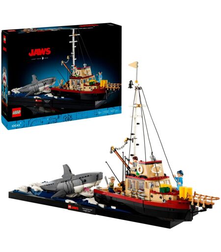"Der weiße Hai" ist einer der bekanntesten Filme von Regisseur Steven Spielberg. Dieses LEGO-Set aus der Serie Ideas stellt dramatische Szenen aus diesem Filmklassiker nach. Es enthält ein LEGO-Modell des Boots Orca aus dem Film, das über ein abnehmbares Dach und eine Kajüte mit Einrichtung verfügt. Hinzu kommen viele aus dem Film bekannte Zubehörteile. Das Boot kann auf seinem Meerwassersockel ausgestellt werden - ideal, um es so aussehen zu lassen, als würde der baubare LEGO-Hai es angreifen! Alternativ kann der Hai auch auf seinem eigenen Ständer platziert werden. Vor dem Boot lässt sich eine bedruckte Platte mit dem aus dem Film bekannten Ausspruch "You’re gonna need a bigger boat" ("Sie werden ein größeres Boot brauchen") platzieren. Drei Filmhelden sind als Mini-Figuren in diesem Set enthalten: Polizeichef Martin Brody, Ozeanograf Matt Hooper und Bootskapitän Sam Quint. ...