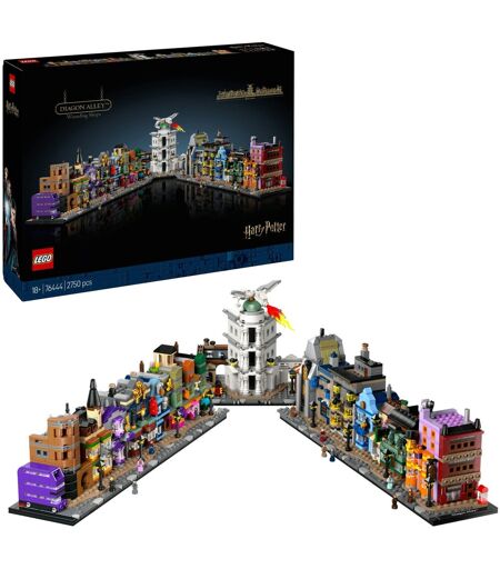 Mit diesem Set aus der LEGO-Serie Harry Potter entsteht ein detailreicher Modellbausatz im Mikromaßstab, der eine faszinierende Zauberwelt eröffnet. Dieses magische Modell aus LEGO-Steinen lädt erwachsene Fans der Fantasy-Abenteuer rund um Harry Potter ein, die legendären Läden in der Winkelgasse nachzubilden. Mit dabei sind unter anderem Weasleys Zauberhafte Zauberscherze, der Eissalon von Florean Fortescue, Ollivanders Zauberstabladen, Mr. Mulpeppers Apothekarium, Gringotts Zaubererbank, das Wirtshaus Zum Tropfenden Kessel sowie das Hauptbüro von Der Tagesprophet. Jedes dieser Gebäude ist nicht nur an seiner unverwechselbaren Fassade sofort zu erkennen, sondern beherbergt auch jeweils ein überraschendes Easter Egg. Dieses magische Bauset für Erwachsene ist ein imposanter Hingucker. Die Winkelgasse kann entweder mit beiden Straßenseiten oder als eine einzige lange Häuserzeile aufgebaut werden. Sie kann aber auch in fünf Segmente zerteilt werden, um die Läden näher zu betrachten. Die 12 ebenfalls enthaltenen LEGO-Mikrofiguren und der Fahrende Ritter rufen viele Filmszenen in Erinnerung. ...