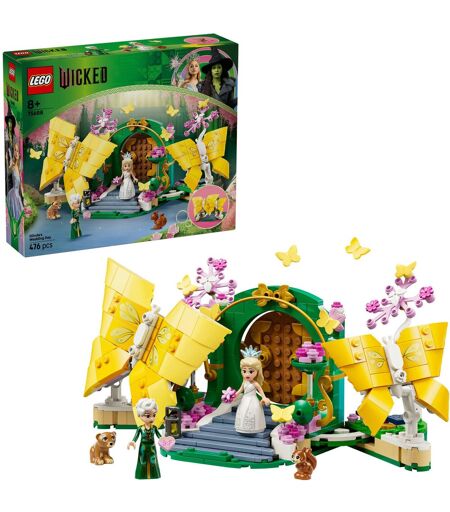 LEGO Wicked Glindas Hochzeitstag (75688) ist ein Spielzeug, das Kindern ab 8 Jahren jede Menge kreative Aktivitäten und Rollenspiele bietet. Mädchen, Jungen und Fans von Wicked Fanartikeln können dieses wunderschöne Modell bauen und dann die dramatische Szene aus Wicked: For Good nachspielen, in der sich Glinda darauf vorbereitet, Fiyero zu heiraten. Kinder können die beweglichen LEGO Riesenschmetterlinge auseinanderziehen, um die Hochzeitsszene zu enthüllen. In dieses Fantasy-Bauspielzeug sind erkennbare Details aus dem Film wie die Hochzeitstorte, eine herzförmige Einladung und Fiyeros Brautstrauß für Glinda integriert. Für authentische Rollenspiele trägt Glinda das Kleid und das Diadem aus dem Film. Wenn dann die enthaltenen Tiere Chaos anrichten und sich der Freudentag plötzlich in eine Katastrophe verwandelt, kannst du mit den auswechselbaren Gesichtern Glindas Entsetzen darstellen. Nach dem Spielen können Kinder die Schmetterlinge aus diesem tollen WickedSet wieder zusammenziehen und das spektakuläre Modell in ihrem Zimmer ausstellen. Dieses Bauspielzeug lässt sich auch wunderbar mit anderen LEGO Wicked Sets kombinieren, damit die Abenteuer aus den Filmen niemals enden. Das Set besteht aus 476 Teilen. ...