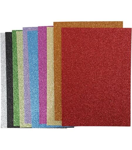 Creativ Company Moosgummi, A4, 210x297 mm, Dicke 2 mm, Glitter, Sortierte Farben, 10 Blatt sortiert
