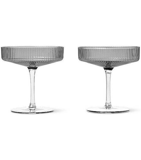 FERM LIVING Champagnerschalen 2er Set RIPPLE Smoked grau B