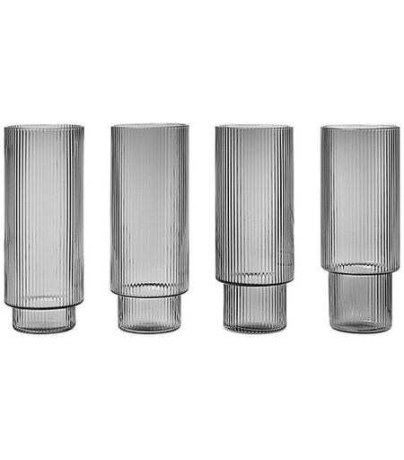 FERM LIVING Longdrink Glas 4-er Set RIPPLE Smoked Grey B