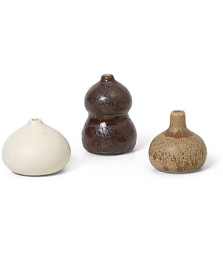 Mit der Familie der Komo-Minivasen kannst du ein dekoratives Stillleben kreieren. Die kleinen, rundlichen Vasen sind in einem Set von drei Stück erhältlich und jeweils mit einer speziellen reaktiven Glasur versehen, die jeder einzelnen Vase einen einzigartigen Ausdruck verleiht. Du kannst sie zusammen mit anderen liebgewonnenen Gegenständen in deinem Bücherregal arrangieren, mit einer einstämmigen Blume auf den Tisch stellen oder mit einem Tablett darunter für Räucherstäbchen verwenden. Größe: B: 8.5 x H: 3.6 x T: 3.2 cm Gewicht: 0.07 kg Material: Steinzeug mit reaktiver Glasur Produkthinweise: Vase 1: Ø: 32 x H: 24 mm / Ø: 1.26 x H: 0.94 in. Vase 2: Ø: 26.5 x H: 36 mm / Ø: 1.04 x H: 1.42 in Vase 3: Ø: 27 x H: 27 mm / Ø: 1.06 x H: 1.07 in Pflegehinweise: In lauwarmem Wasser abspülen ...
