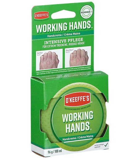 Anwendungsgebiet von Okeeffe's Working Hands HandcremeOkeeffe's Working Hands Handcreme - Alltägliche Arbeiten können dazu führen, dass sich Ihre Hände trocken und rau anfühlen. Die hochkonzentrierte Formel der Okeeffe's Working Hands Handcreme bringt Linderung, spendet Feuchtigkeit und pflegt extrem trockene, rissige Hände.