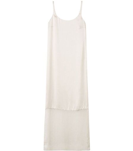 Damen Kleid aus reiner Seide Träger Regular Fit Knöchellang Rundhalsausschnitt Horizontale Naht am Saum mit transparentem Chiffoneinsatz Unifarben Farbbezeichnung: Light Ivory Material: 100% Seide ...