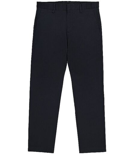 Herren Chino aus einem Bio-Baumwollmix Maßgeschneiderte Chinohose mit zulaufendem Bein Anzughosenstil Bügelfalte Blindsaum Schließt mit Haken und Ösenverschluss Pattentaschen Seitliche Eingriffaschen Unifarben Farbbezeichnung: Navy Material: 99% Baumwolle, 1% Elasthan ...