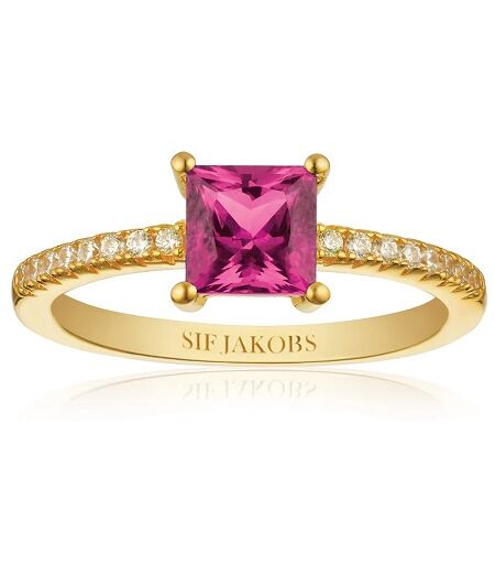 Dieser atemberaubende Sif Jakobs Ring ist ein wahrhaftiges Schmuckstück, das jedes Outfit aufwertet. Hergestellt aus hochwertigem 18 karätig vergoldetem 925er Sterlingsilber, verfügt er über eine glänzende polierte Oberfläche, die ihn zum Strahlen bringt. Handbesetzt mit pinkfarbenen Zirkonia im Facettenschliff, funkelt der Ring in jedem Licht und fängt alle Blicke ein. Der perfekte Begleiter für besondere Anlässe oder um Ihrem Alltagslook einen Hauch von Glamour zu verleihen. Mit diesem Ring werden Sie garantiert im Rampenlicht stehen! Ring Maße: Höhe 6 mm, Breite 6 mm, Dicke 4,5 mm ...
