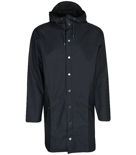 Wasserfester Unisex Regenparka Verstellbare Kapuze mit Bindeband und Schirm Reißverschluss und Druckknopfleiste Eingrifftaschen mit Druckknopfverschluss Langarm mit Achselbelüftung Schulterpasse Kurzer Schlitz am hinteren Saum Verlängerte Rückenpartie Glatte Oberfläche Regular Fit Länge bis oberhalb des Knies Wassersäule: 4 000 mm Länge: ca. 95cm Farbbezeichnung: Navy Material: 100% Polyester ...