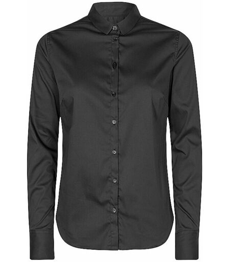 Damen Bluse aus angenehmer Baumwollmischung Farbbezeichnung: Black Kragen Langarm Gerade Passform Hoher Tragekomfort Material. 67% Baumwolle 28% Polyamid 5% Elasthan ...
