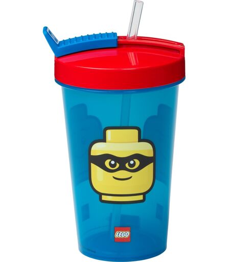 Der LEGO Becher mit Strohhalm Iconic classic Bright Blue hat einen halbtransparenten Boden mit LEGO Emoticon-Grafiken. Der Trinkhalm aus weichem Silikon lässt sich mithilfe des Deckelschiebers, der an den LEGO Steintrenner erinnert, sicher verschließen, damit unterwegs kein Schmutz in den Becher gelangt. Der Deckel kann abgeschraubt werden, sodass sich der Becher leicht mit Wasser, Eiswürfeln, Früchten oder anderen Getränken füllen lässt. Dieser praktische Becher kann zu Familienausflügen, Picknicks oder anderen Anlässen mitgenommen werden, bei denen Kinder Durst bekommen. ...