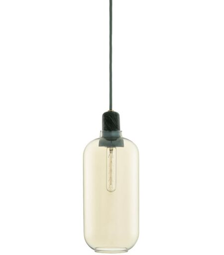 Die Normann Copenhagen Amp Pendelleuchte Large vereint klassisches Design mit exklusiven Materialien. Entworfen im Jahre 2014, schafft es der Designer Simon Legald nostaligisches Design mit klassischen Materialien wie Glas und Marmor zu vereinen. Heraus kommt eine ansprechende Pendelleuchte die jedes Interior gekonnt unterstreicht.Die Normann Copenhagen Amp Pendelleuchte Large besteht aus einem schmalen Korpus aus Glas, der wahlweise matt oder transparent gehalten ist. Durch den transparenten Leuchtenkörper scheint das Leuchtmittel durch. Die Fassung besteht aus elegantem Marmor, der durch seine kompakten Maße jedoch nicht zu aaufdringlich wirkt. Die Normann Copenhagen Amp Pendelleuchte Large wird standardmäßig ohne Leuchtmittel geliefert. Dank klassischer E14 Fassung kann jedes passende Leuchtmittel bis 25W verwendet werden. Normann Copenhagen bietet aber auch ein optisch beso... ...