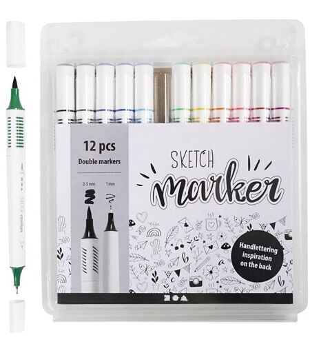 Creativ Company Sketch Marker, Strichstärke 1+2-5 mm, Standard-Farben, 12 Stk