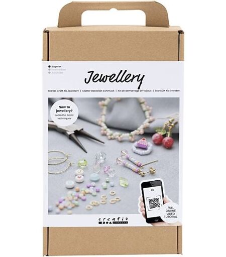 Mit diesem Set lernen Sie, wie man Schmuck herstellen kann. Enthält alle Materialien und Anleitungen, die Sie benötigen. Wenn Sie lernen möchten, wie Sie Ihren eigenen Schmuck anfertigen, ist dieses Starter Kreativ Set ideal. Erlernen Sie mit unserem Starter Kreativ Set die Schmuckherstellung. Es enthält alles, was Sie für den Einstieg benötigen. Scannen Sie den QR-Code und tauchen Sie in unser Lernuniversum vollgepackt mit Videos ein. Sie erlernen verschiedene Grundelemente und Techniken der Schmuckherstellung und werden am Ende vier Paar Ohrringe, 2025 Perlenarmbänder, Fingerringe oder Halsketten auf einem dünnen Gummiband haben. Inhalt: Figurenperlen, Rocailleperlen, Facettenperlen, Wachsperlen, Perlen mit Buchstaben, Süßwasserperlen, Glasperlen, Gummiband, Creolen, französische Ohrring-Haken, Ohrstecker, Nietstifte mit Flachkopf, O-Ring, Schmuckstift, Rundzange, Universalzange, Drahtschneider. ...