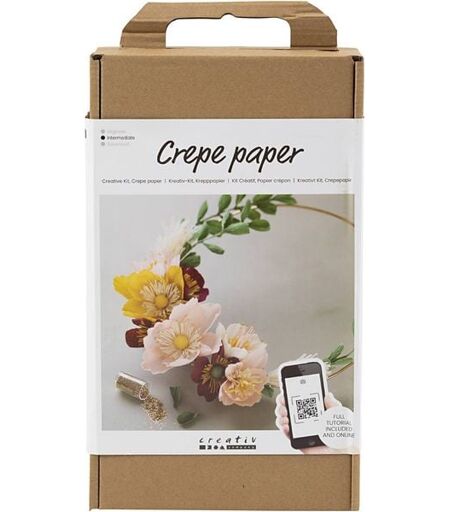 Mit diesem Set können Sie einen Kranz aus Krepppapier machen. Es enthält alle Materialien, Vorlagen und Anleitungen, die Sie benötigen.Mit diesem Kreativset können Sie ganz einfach Ihren eigenen Kranz aus Kreppblumen und -blättern herstellen. Das Set enthält Schablonen für fünf verschiedene Blüten und Blätter und dazu Glitter für Blütenränder und Blütenstaubblätter, um dem Kranz mit feinen Details zu verzieren..Inhalt: Krepppapier, Blumenstiele, Kleber, Glitter, Bonsaidraht, Kugeln, Messingdraht ...