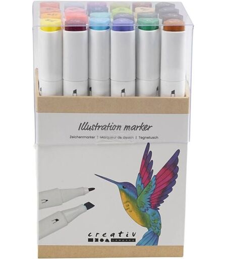 Creativ Company Zeichenmarker, Strichstärke 1+8 mm, Zusätzliche Farben, 24 Stk