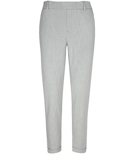 Elegante Damen Businesshose aus angenehmer Viskose-Mischung Mittlere Leibhöhe Elastischer Bund Seitliche Eingrifftaschen Paspelierte Gesäßtaschen Gerades Bein Unifarben Farbbezeichnung: Light Grey Melange Material: 62% Polyester, 33% Viskose, 5% Elasthan ...