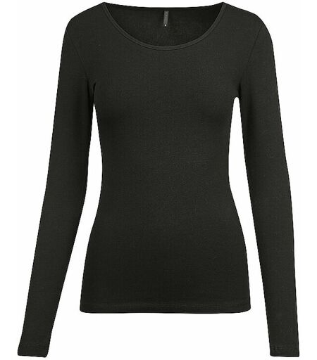 Basic Damen-Shirt aus glattem JerseyRundhalsausschnittLangarmFarbe: BlackKörpernahe PassformHoher TragekomfortMaterial: 95% Baumwolle 5% Elasthan ...