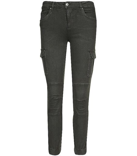 Damenhose aus Baumwoll-Denim5-Pocket-StyleEingrifftaschenCargotaschen mit Patte und DruckknopfSchmal geschnittenDekorative Abnäher am BeinElastischer BeinabschlussFarbe: blackMaterial: 98% Baumwolle, 2% Elasthan ...
