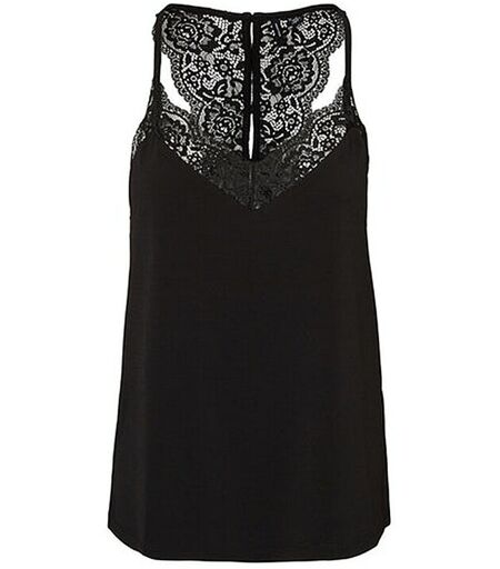 Ärmelloses Damen Top Reguläre Passform Leichter Stoff - Spitze am Rücken V-Ausschnitt mit Spitze Länge: 59 cm in Größe S Material: 95% Polyester, 5% Elasthan ...