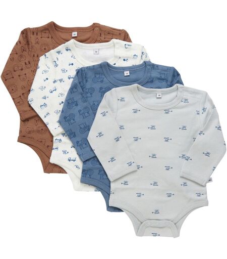 Pippi 4er-Pack Bodys langarm Fahrzeuge Tiere - mehrfarbig - Junge - Size: 62