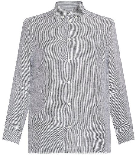 Herren Hemd aus organischem Leinen Kentkragen Langarm Knopfleiste Aufgesetzte Eingriffstasche mit Knopf Weitenverstellbare Manschetten Quetschfalte im Rückenteil Gerade Passform Streifenmuster Farbbezeichnung: Total Eclipse Material: 100% Bio-Leinen Zertifizierung: GOTS ...