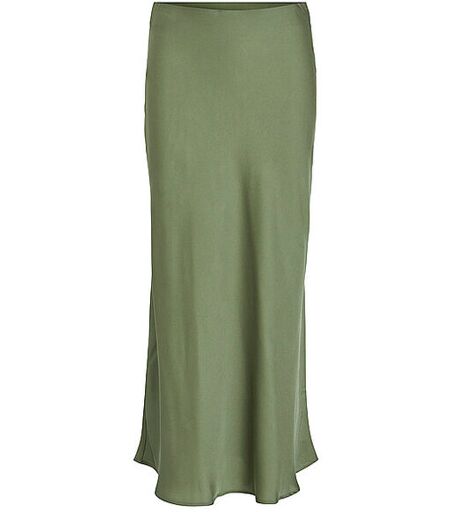 Eleganter langer Rock für Damen aus recycelten Material Hohe Taille Unifarben Metallic Optik Farbbezeichnung: Oil Green Material: 100% recyceltes Polyester ...