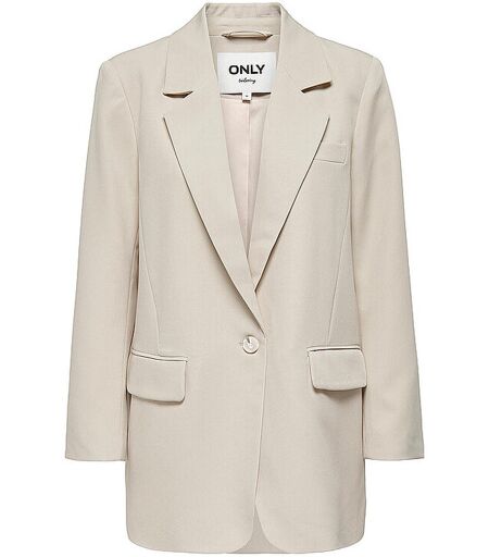 Damen Blazer aus glattem Gewebe Dazupassende Hose 7566968 Reverskragen Langarm Oversized geschnitten Schließt mit einem Knopf Aufgesetzte Patten Farbbezeichnung: Pumic Stone Material: 87% Polyester, 13% Elastan ...