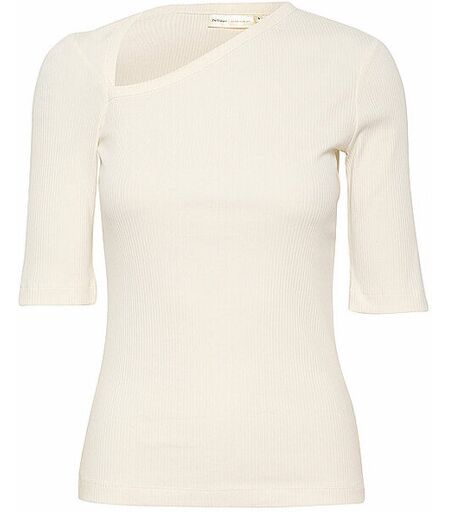 Damen T-Shirt aus Jersey Asymmetrischer V-Ausschnitt Halb Arm Unifarben Schmale Passform Farbbezeichnung: Wisper White Material: 92 % Baumwolle, 8 % Elasthan ...