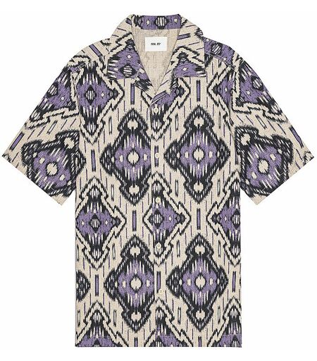 Herren Hemd aus Bio-Baumwoll-Leinen-Mix Cubakragen Kurzarm Gerade geschnitten Gemustert Farbbezeichnung: Violet Material: 55% Leinen,. 45% Bio-Baumwolle ...