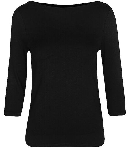 Damen Shirt aus weichem Modal Tencel-Mix U-Boot-Ausschnitt 3/4 Arm Unifarben Gerade Passform Farbbezeichnung: Black Material: 48% Baumwolle 48% Modal Tencel 4% Elasthan ...
