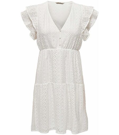Damen Minikleid aus reiner Baumwolle V-Ausschnitt Kurze Knopfleiste Kurzarm Spitzen-Details Unifarben Lockerer Passform Knieumspielend Farbbezeichnung: Cloud Dancer Material: 100% Baumwolle ...