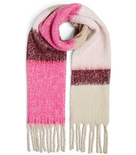 Damen Schal aus weichem Gewebe Color Blocking Fransen am Saumabschluss Maße: ca. 200 x 50 cm Farbbezeichnung: Beetroot Purple/Colour Blocking Material: 50% Recyceltes Polyester, 50% Polyester ...