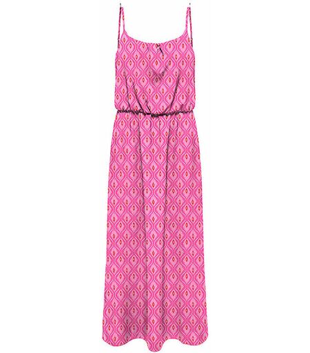 Damen Maxikleid aus fließender LENZING™ ECOVERO™ Viskose Rundhalsausschnitt Verstellbare Spaghettiträger Taille mit elastischen Bündchen Gerade geschnitten Allovermuster Maxilänge Farbbezeichnung: Fuchsia Purple / 656 Vibrant Geo Material: 100% LENZING™ ECOVERO™ Viskose ...