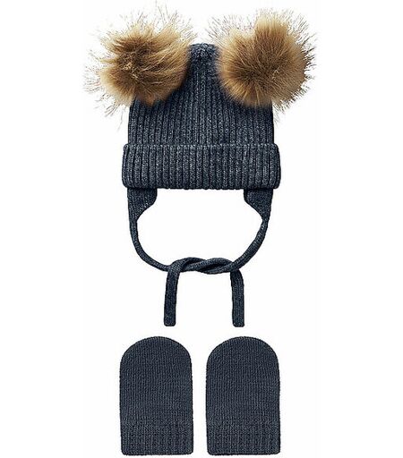Praktische und weiche Outerwear-Accessoires halten dein Kind warm und sind bequem. Baby Set bestehend aus Mütze und Fäustlingen Mütze mit Bommel und Bindeverschluss Fäustlinge mit Rippstrick-Bündchen Farbbezeichnung: Spellbound Material: 46% Polyester, 28% Polyacryl, 26% Viskose WARNHINWEIS: Von Feuer fernhalten! ...