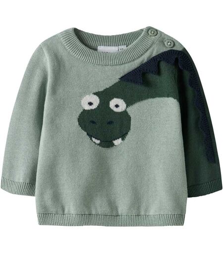Der Strickpullover von Name It überezugt mit feinen Maschen aus Bio-Baumwolle und einem eingestrickten Dino-Motiv mit applizierten Zacken. Strickpullover von Name It eingestricktes Dino-Motiv mit applizierten Zacken gerippte Bündchen Rundhalsausschnitt mit Knopfverschluss in der Schulter Strickqualität aus Bio-Baumwolle ...