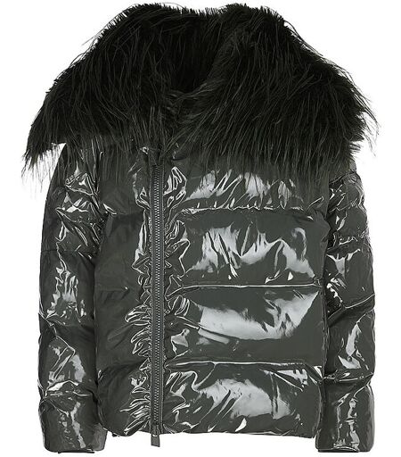 Damen Steppjacke Breiter Kragen mit Kunstfellbesatz Charakteristischer wasserdichter PU-Stoff Sichere rahmengenähte Nähte Aufgesetzte Taschen vorne Isolierter großer Kragen mit ausdrucksstarkem Fleecestoff Karabinerhakenverschluss am Halsband Verdeckte gerippte Sturmbündchen Versteckte elastische Kordel am Saum Gummierte, wetterfeste Hardware Zwei-Wege-Reißverschluss in der vorderen Mitte Oversized Cropped-Passform Innentasche Farbbezeichnung: Coal Material: 100% Polyester ...