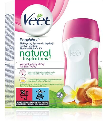 Veet EasyWax, , Depilation und Epilation für Damen, Möchten Sie unerwünschte Körperhaare loswerden, aber am besten ohne das Wachsen oder herkömmliche Rasur? Das Produkt Veet EasyWax ermöglicht eine schnelle, effektive und schmerzlose Haarentfernung und wird die Härchen während der Depilation aufweichen, damit sie bei nächstem Wachstum geschwächt sind. Einfach gleichmäßig auf die Haut auftragen, wenige Minuten warten und dann mit dem Spatel abwischen. Das Ergebnis ist eine perfekt glatte Haut, die eine längere Zeit ohne Wachsen oder Epilieren auskommt, als bei einer Haarentfernung mit herkömmlichem Rasierer. Das Set beinhaltet: Wachserwärmer 1 St. Ersatz-Wachsfüllung für alle Oberhauttypen 50 ml Enthaarungsstreifen 12 St. Perfect Finish sanfte Feuchttücher 4 St. Ständer 1 St. Eigenschaften: verringert durch eine regelmäßige Anwendung die Gesamtmenge der nachwachsenden Härchen beseitigt Körperhaare für viele Wochen kann auch bei kurzen Härchen benutzt werden lässt nachwachsende Härchen feiner wirken ist einfach anzuwenden Anwendung: Bitte beigelegte Anleitung befolgen. ...
