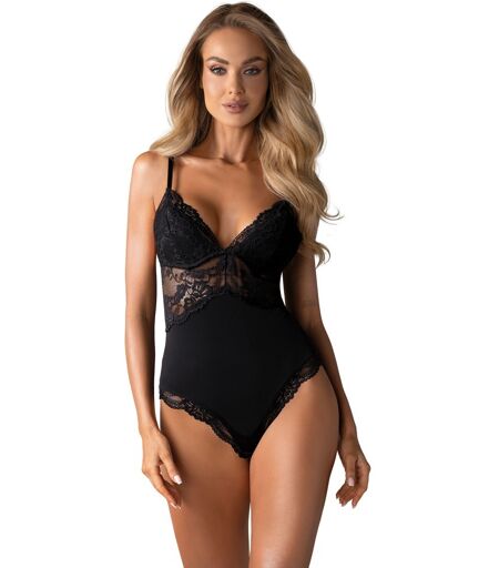 Bildschöner schwarzer Body 810-TED-1 von Obsessive aus weichem Stretchmaterial in Kombination mit feiner elastischer Spitze. Hoher Tragekomfort! Spitzen-Cups blickdicht gepolstert. Die Träger sind passend verstellbar. Im Schritt mit Hakenverschluss. 85% Polyamid, 15% Elasthan. ACHTUNG – Obsessive hat eine separate Größentabelle. ...