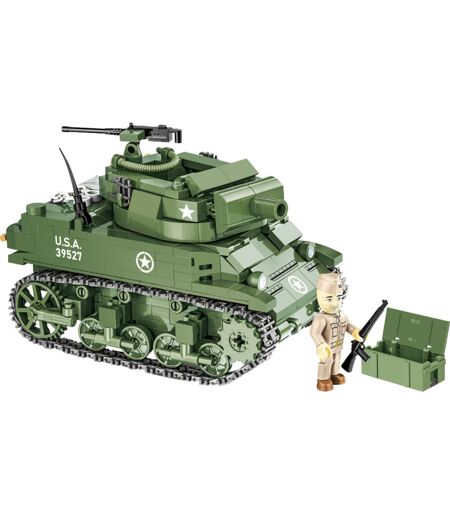 Der M8 Scott ist eine selbstfahrende Haubitze aus dem Zweiten Weltkrieg, die auf dem Fahrgestell des leichten Panzers Stuart basiert. Dieses COBI-Modell wurde passend zu den Figuren im Maßstab 1:35 entwickelt und besteht aus 525 Bausteinen. Zu den Funktionen des Modells gehören der mögliche Zugang zum nachgebildeten Motor, ein drehbarer Turm, eine bewegliche Kanone sowie eine funktionierende Kettentraktion. Alle grafischen Elemente sind hochwertige Drucke. Die Figur zeigt einen amerikanischen Soldaten im Rang eines Hauptmanns. Das Set wird mit einem Schild geliefert, auf dem der Name der Haubitze aufgedruckt ist. ...