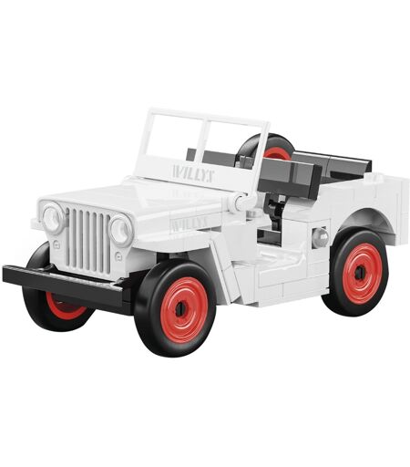 Nachdem die Firma Willys-Overland im Jahr 1944 einen kleinen Geländewagen für die Armee produziert hatte, wurde im darauffolgenden Jahr eine Produktionsvariante für Privatkunden auf den Markt gebracht, die mit dem Werkscode CJ-2A gekennzeichnet war. Die erste Generation des Willys CJ führte in großem Maßstab die für spätere Jeep-Modelle charakteristischen Karosserieproportionen ein, darunter deutlich ausgeprägte Kotflügel, eine konvexe Motorhaube, runde, eng beieinander liegende Scheinwerfer und vertikale Balken des Kühlergrills. Dieses im Maßstab 1:35 entwickelte lizenzierte Modell aus Klemmbausteinen von COBI enthält speziell gestaltete Elemente mit dem charakteristischen Willys-Grill und Fensterrahmen. Das Modell mit der weißen Lackierung verfügt über rotierende Räder und ist so dimensioniert, dass es für COBI-Minifiguren (nicht im Lieferumfang) geeignet ist. ...
