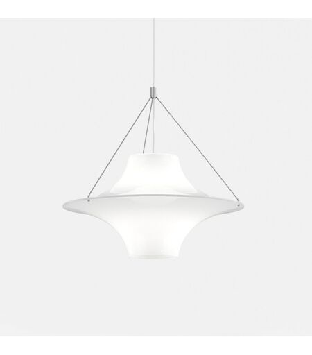 Die elegante Innolux Lokki Pendelleuchte ist einer der bekanntesten finnischen Design-Klassiker, ein echter Pionier unter Kunststoffleuchten und wird seit den 60er Jahren in Finnland handgefertigt. Das schwebende Design ist innovativ und zeitlos und erhielt seinen Namen von dem finnischen Wort für Möwe. Zwei formschöne, identische Hälften aus opalweißem Acryl werden mit edlen verchromten Schrauben aneinander befestigt und an drei zierliche Chromketten verbunden, um den Eindruck eines schwerelosen, fliegenden UFO’s zu vermitteln, welches der Leuchte letztendlich auch den anderen englischen Spitznamen „Skyflyer ...
